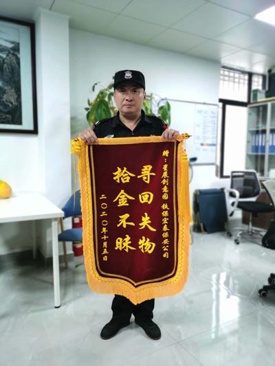 鐵保宏泰保安拾金不昧,失主送錦旗感謝