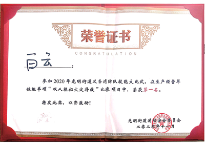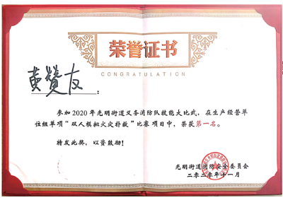 活動中,我司深圳市鐵保宏泰保安服務有限公司榮獲消防對技能大比武生產經營單位組第一名;我司鐵保宏泰保安公司黃贊友與白云同志榮獲“雙人模擬火災撲救”比賽項目第一名。