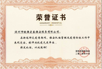 熱烈祝賀鐵保宏泰保安公司榮獲深圳保安行業(yè)抗疫先進單位