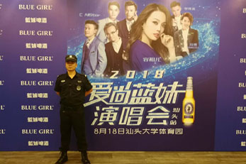2018年08月18日晚上18:00在:汕頭大學新體育館主場館藝人:容祖兒,Call star舉辦了演出活動,我司派出安保人員95人參加了此次活動秩序維護活動。